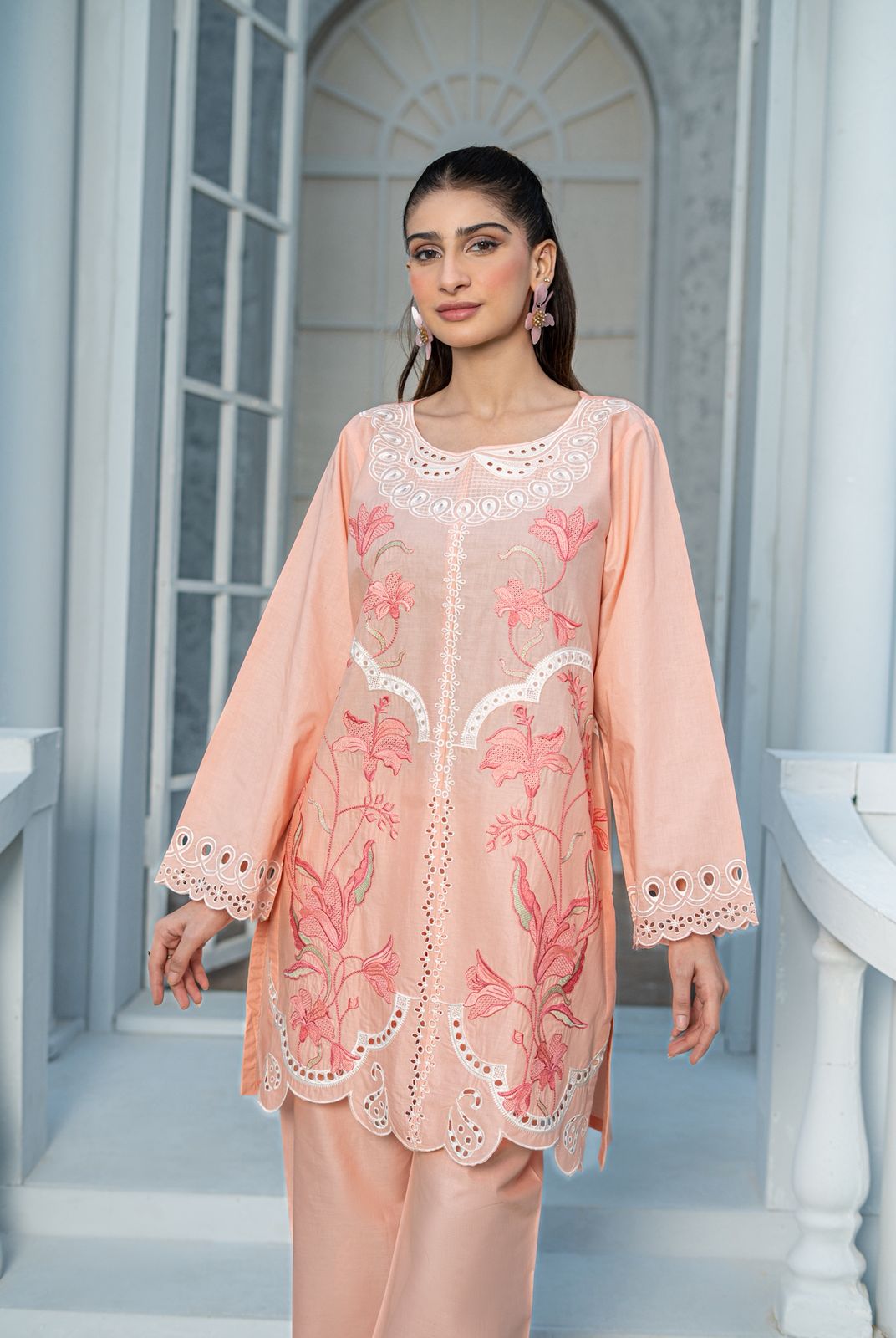 Introducing AMYRL’s Rose Mist Embroidered 2-Piece Co-ord Set, made from premium cotton fabric for luxury comfort and modern womens wear. This designer outfit features delicate embroidery, soft pastel tones, and perfect tailoring — ideal for daily wear, office wear, casual looks, or party wear.